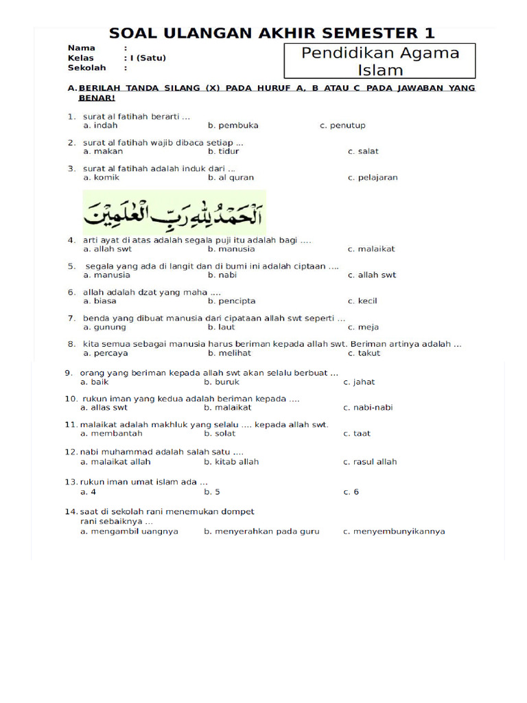 Penilaian Akhir Semester (PAS) mata pelajaran Pendidikan Agama Islam (PAI) kelas 11 semester 1 merupakan momen penting untuk mengukur pemahaman siswa terhadap materi yang telah dipelajari selama satu semester. Persiapan yang matang akan membantu siswa meraih hasil yang optimal. Artikel ini hadir sebagai panduan lengkap yang berisi contoh-contoh soal PAS PAI kelas 11 semester 1, lengkap dengan pembahasan yang mendalam. Tujuannya adalah untuk memberikan gambaran yang jelas mengenai materi yang diujikan, jenis-jenis soal yang mungkin muncul, serta strategi menjawab soal dengan tepat dan efektif.